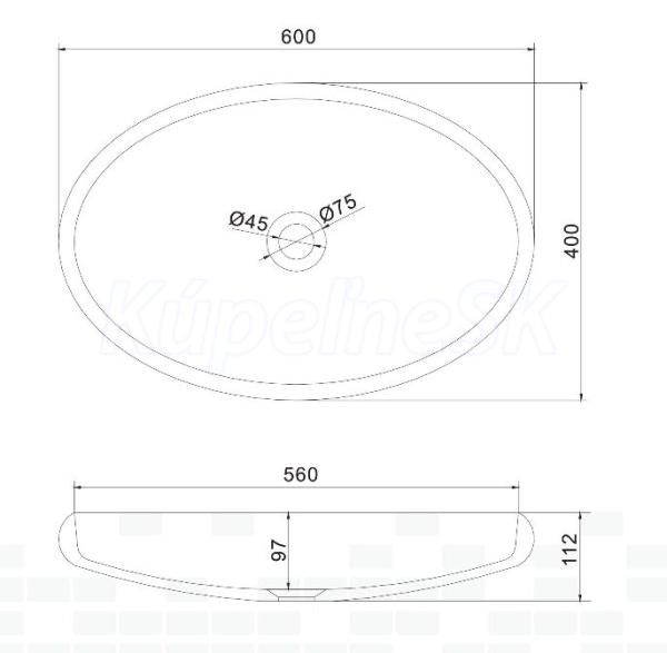 >>  Umývadlá  >>  Umývadlá na dosku  >>  Sapho THIN oválne umývadlo 600x400x112mm, na dosku, matná biela WN213