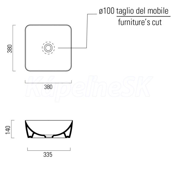 GSI SAND keramické umývadlo na dosku 38x38 cm, creta mat