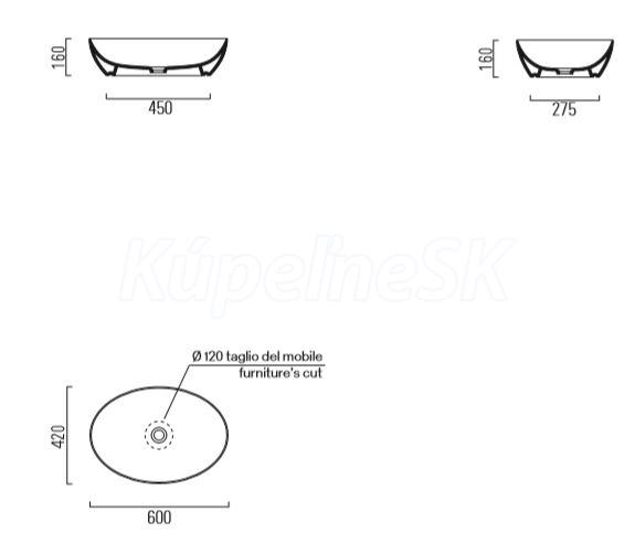 GSI PURA keramické umývadlo na dosku 60x42 cm, creta mat