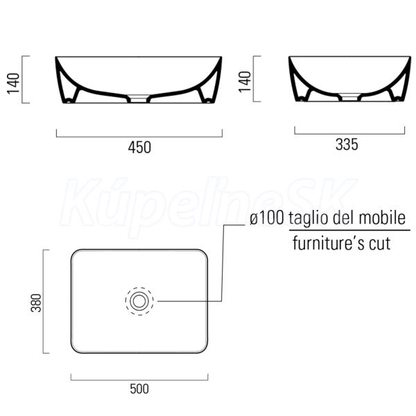 GSI SAND keramické umývadlo na dosku 50x38 cm, tortora mat