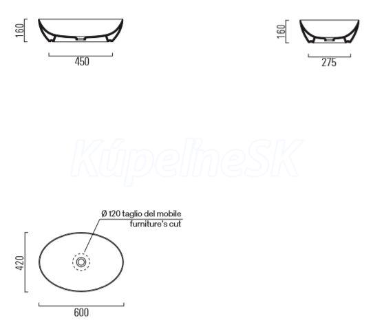 GSI PURA keramické umývadlo na dosku 60x42 cm, ghiaccio mat
