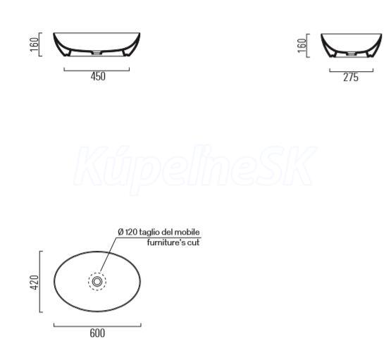 GSI PURA keramické umývadlo na dosku 60x42 cm, biela ExtraGlaze 884211