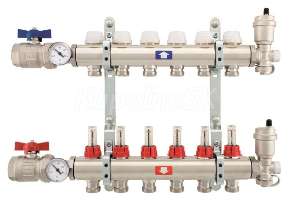 - tyč rozdeľovača s regulačnými prietokomermi, s prechodmi 3/4" eurokonus