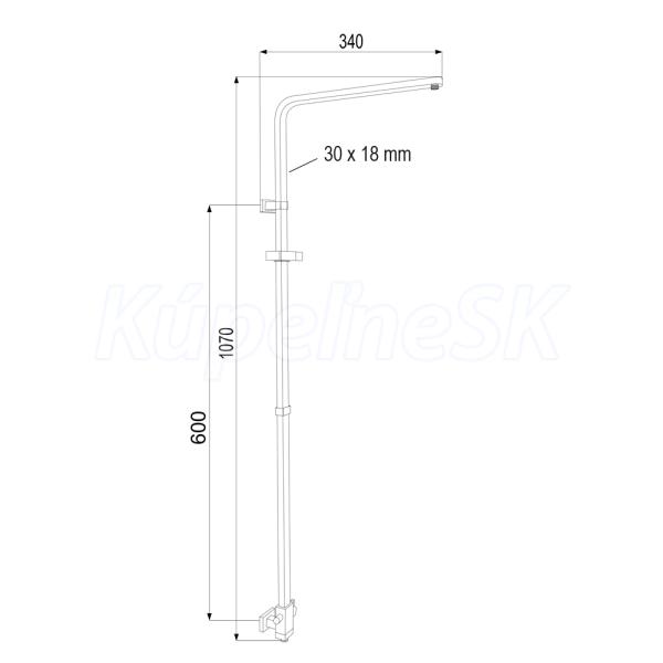 Posuvný držiak s výškou 1070 mm s dvojzámkovou nerez sprchovou hadicou 1500 mm a prepojovacou nerez hadicou 550 mm