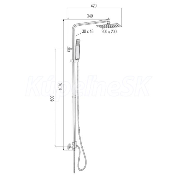 Sprchový set Quatro s nastaviteľnou tyčou, sprchovou hadicou 150 cm, prepojovacou hadicou 55 cm, ručnou a hlavovou hranatou sprchou, 200x200 mm, nerez