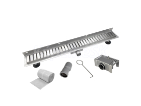 Celonerezové odtokové žľaby tejto rady predstavujú nové, moderné riešenie sprchových kútov a kúpeľní. V sprchových kútoch nahrádzajú vaničky a dotvárajú estetický ráz kúpeľne. - celonerezové telo žľabu - nerezová vnútorná vyťahovacia časť sifónu - výškovo nastaviteľné nožičky - materiál tela: nerezová oceľ (AISI 304) - materiál sifónu: nerezová oceľ (AISI 304) Nerezové sitko a zápachová uzávera. Odtokový žľab STRIP je dodávaný vrátane roštu, ktorý sa vyznačuje moderným dizajnom a prerezanými pruhmy.