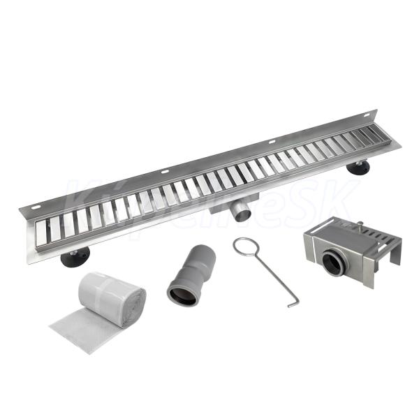 Odtokový sprchový žľab k stene, 90x7 cm, nerez, vr. roštu STRIP a nerezového vnútra sifónu.