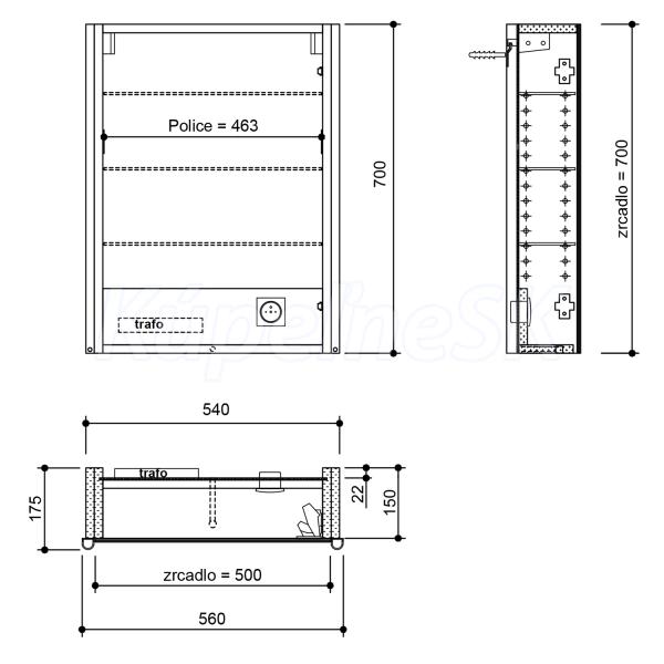 | Výbava | Osvetlenie, Integrovaná el. zásuvka, Obojstranné zrkadlové dvierka, Spomaľovacie pánty |