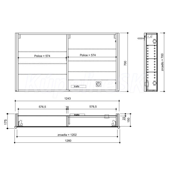 VýbavaOsvetlenie, Integrovaná el. zásuvka, Obojstranné zrkadlové dvierka, Spomaľovacie pánty