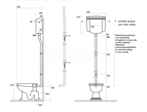 Kerasan RETRO WC misa s nádržkou, spodný odpad, biela-bronz