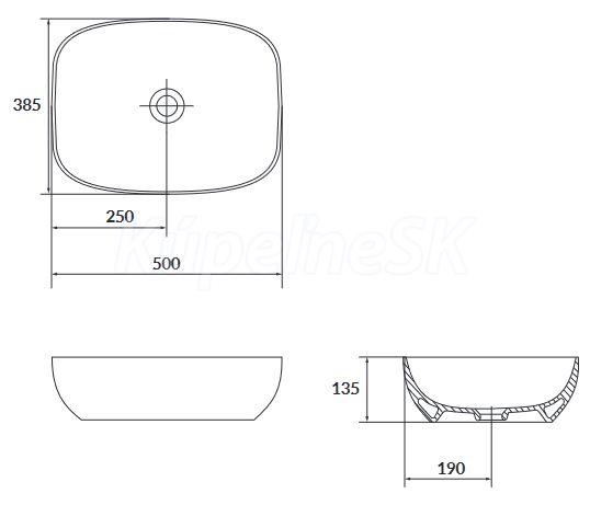 Cersanit LARGA Umývadlo na dosku 50x38cm keramické, Biela Lesk K677-003