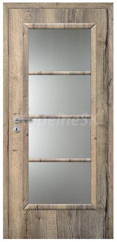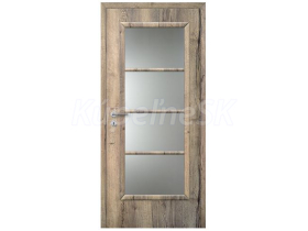 - Rámčeky okolo skla sú vyrobené z materiálu MDF a potiahnuté fóliou s rovnakým vzorom ako krídlo dverí. Možnosť zasklenia s čiernymi zasklievacími rámčekmi za príplatok.