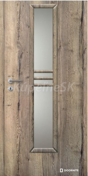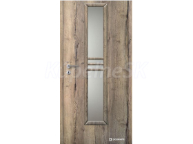 - Rámčeky okolo skla sú vyrobené z materiálu MDF a potiahnuté fóliou s rovnakým vzorom ako krídlo dverí. Možnosť zasklenia s čiernymi zasklievacími rámčekmi za príplatok.