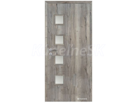 - Rámčeky okolo skla sú vyrobené z materiálu MDF a potiahnuté fóliou s rovnakým vzorom ako krídlo dverí. Možnosť zasklenia s čiernymi zasklievacími rámčekmi za príplatok.