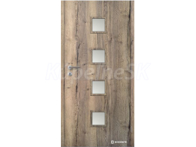- Rámčeky okolo skla sú vyrobené z materiálu MDF a potiahnuté fóliou s rovnakým vzorom ako krídlo dverí. Možnosť zasklenia s čiernymi zasklievacími rámčekmi za príplatok.