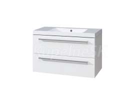 Bino, kúpeľňová skrinka s umývadlom z liateho mramoru, 1010x578x460 mm, spodná, biela lesk, 2 zásuvky.