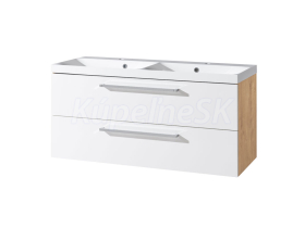 Mereo Bino, kúpeľňová skrinka s umývadlom z liateho mramoru 121 cm, biela/dub CN673M