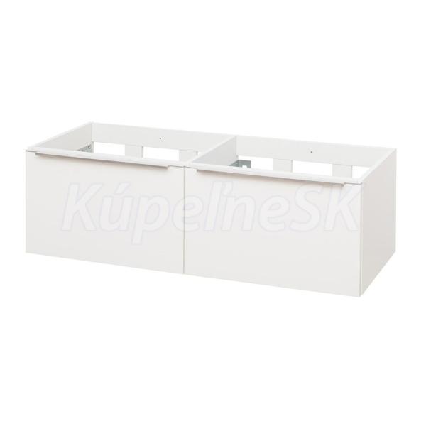 Mailo, kúpeľňová skrinka 1205x365x476 mm, spodná, biela lesk, 2 zásuvky. Možno kombinovať s umývadlom, popr. s kúpeľňovou doskou na skrinku.