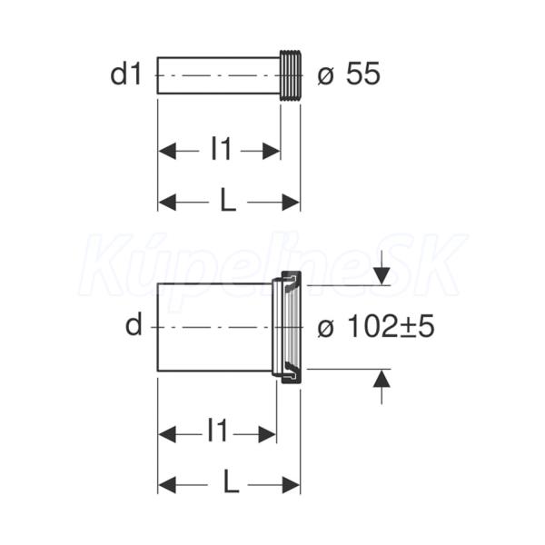 Pripájacia súprava Geberit pre závesné WC, dĺžka 18,5 cm: d=90mm, d1=45mm, S matným pochrómovaním