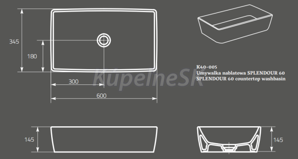 Opoczno SPLENDOUR 60 nábytkové umývadlo hranaté na dosku+keram.pileta klik-klak,Perf.Clean