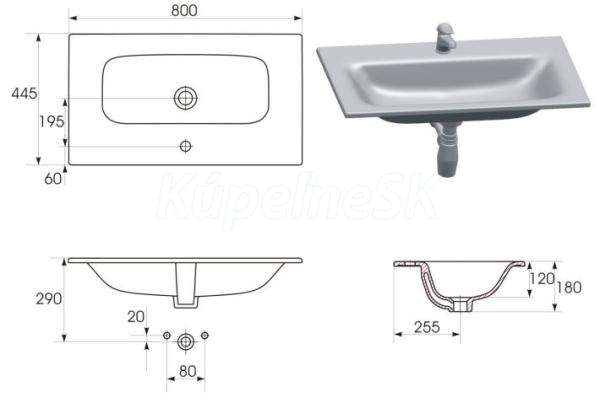 - Umývadlo: zápustné MODUO 80 zo šamotovej keramiky je pokrytá unikátnou glazúrou Cersanit White.