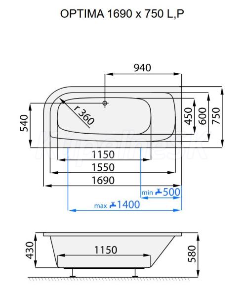 Akrylátová vaňa Optima má moderný dizajn, praktický úsporný tvar a predovšetkým optimálny sklon chrbtovej časti, ktorý Vám prinesie potešenie z kúpeľa. Táto vaňa sa radí k najpohodlnejším vaniam na trhu.