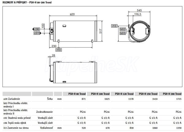Stiebel Eltron PSH-H200Trend Elektrický tlakový ohrievač vody 200l, horizontálny, ELOV200