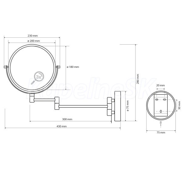 Sapho X-ROUND BLACK závesné kozmetické zrkadielko priemer 190mm, čierná XR006B