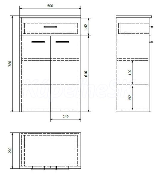 Závesná spodná skrinka 1x zásuvka dvojkrídlové dvierka vnútri 2 drevené police chrómové okrúhle úchytky možné inštalovať s ,nožičkami, ktoré je nutné objednať samostatne - viď príslušenstvo