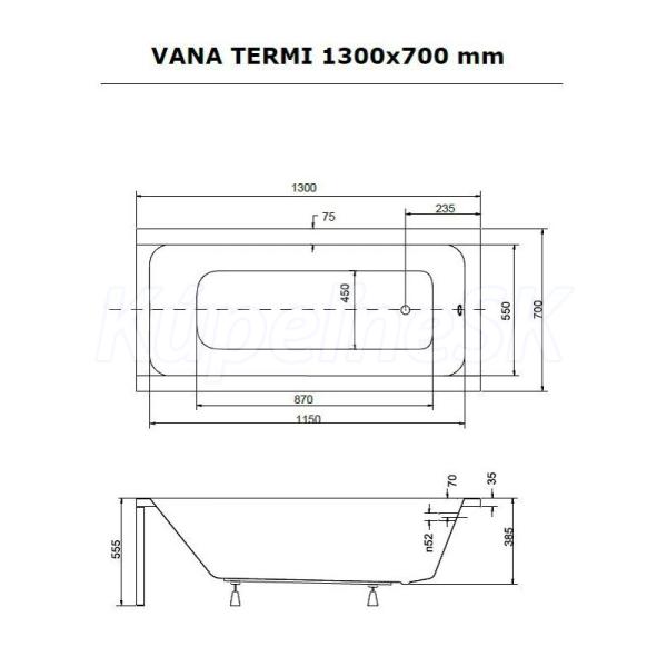Obdĺžniková vaňa TERMI vyniká vysoko kvalitným spracovaním a spoľahlivou funkčnosťou všetkých súčastí a materiálov.