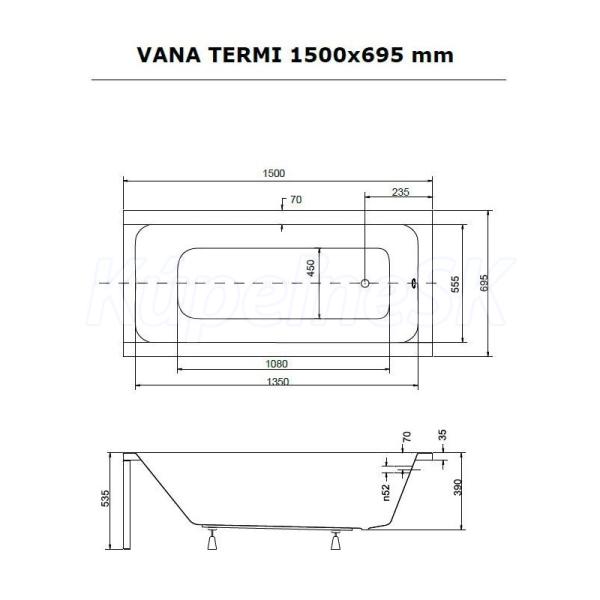Obdĺžniková vaňa TERMI vyniká vysoko kvalitným spracovaním a spoľahlivou funkčnosťou všetkých súčastí a materiálov.