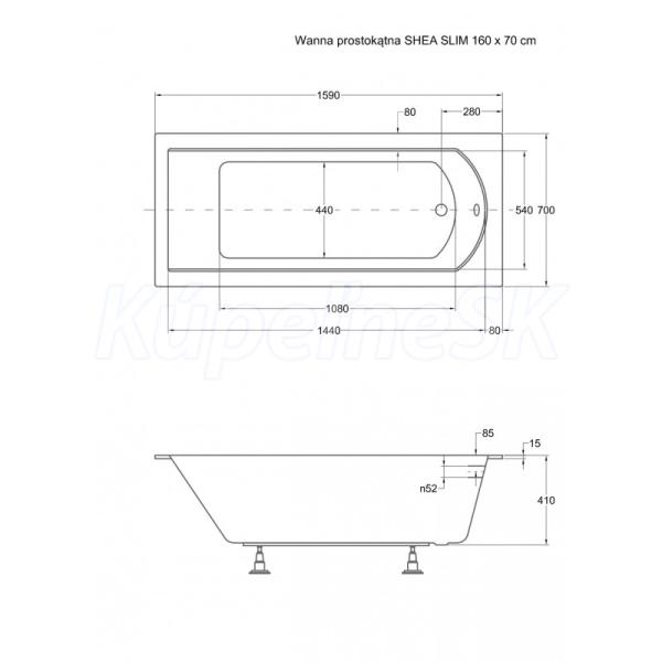 Prednosti obdĺžnikovej vane SHEA SLIM: