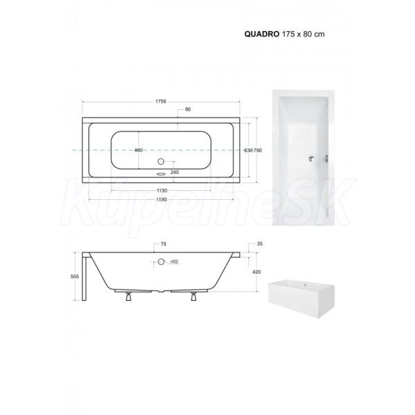 Besco QUADRO Vaňa obdĺžniková akrylátová 175x80cm, 195 l, Biela