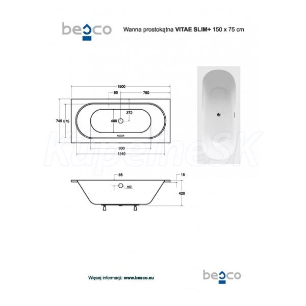 Besco VITAE SLIMa Vaňa obdĺžniková akrylátová 150x75cm, 150 l, Biela