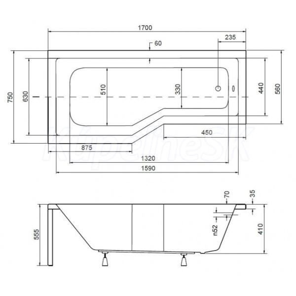 - 1700 × 750 mm, objem 150 l