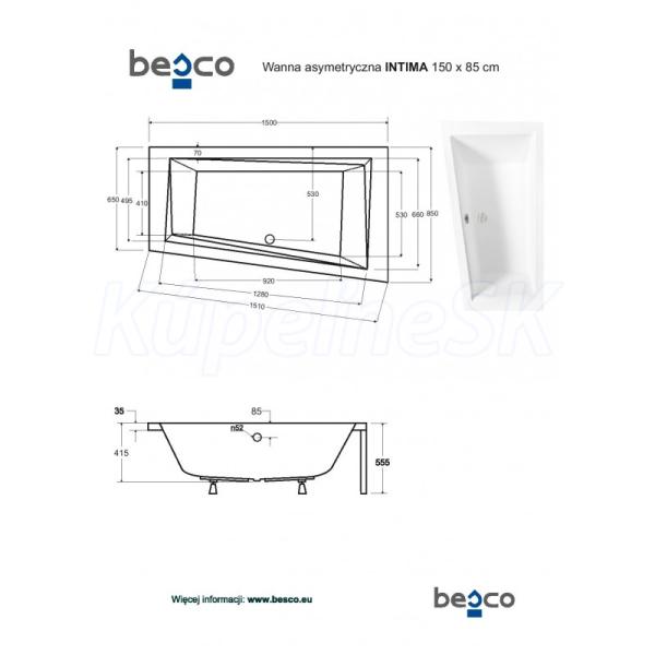 Besco INTIMA Vaňa asymetrická akrylátová 150x85cm Pravá 190 l, Biela