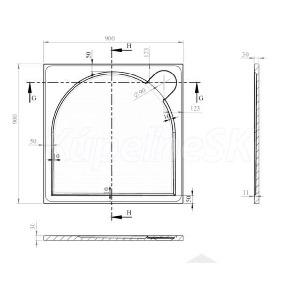 Vanička je vhodná na osadenie na moderné štvorcové sprchové kúty