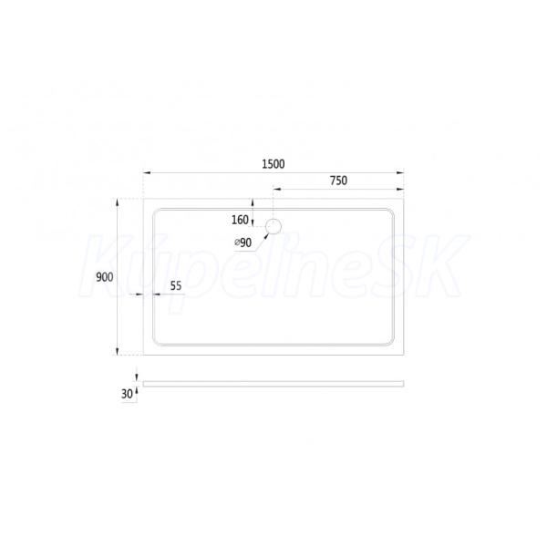 Olsen Spa VENETS Obdĺžniková sprchová vanička liaty mramor 150x90x3cm, Biela