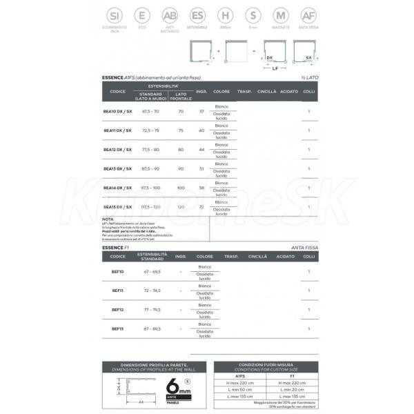 HOPA ESSENCE A1FS sú dostupné vo všetkých kombináciách variantov rámov a skiel. Tie sú však na objednávku (spravidla dostupnosť 4 - 6 týždňov) a cena na požiadanie. V prípade záujmu o atypický rozmer sprchových dverí, či rozmerov a prevedení na objednávku, neváhajte nás kontaktovať na info@olsen-spa.cz , alebo telefonicky na +420 577 342 630.