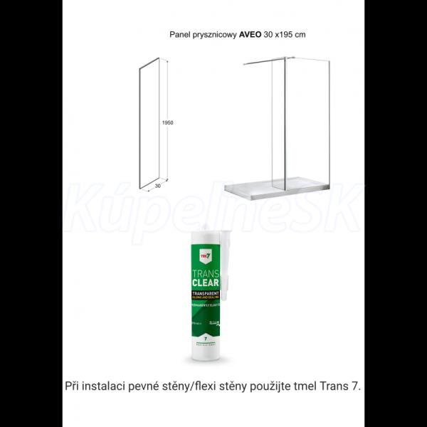 Pevná stena AVEO je určená iba na montáž v kombinácii s Walk-in AVEO a AVEO DUE. Kombináciou tejto sprchovej zásteny a pevnej steny jednoducho vytvoríte atraktívny sprchovací kút. Pevnú stenu AVEO nemožno inštalovať ako samostatnú stenu. Pri inštalácii pevnej steny/flexi steny použite tmel Trans 7.