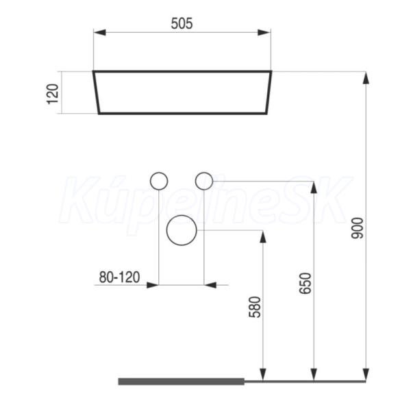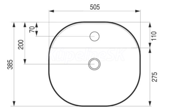Hopa PIEGA Umývadlo na dosku keramické, 50,5x38,5x12cm, otvor pre batériu, Biela