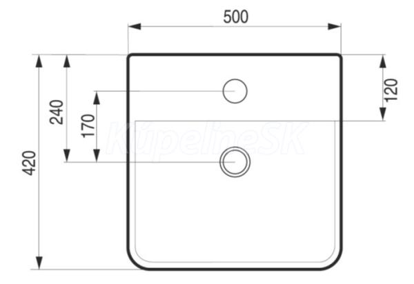>>  Umývadlá  >>  Umývadlá na dosku  >>  Hopa PIENO Umývadlo nástenné/na dosku keramické 50x42x12cm s prepadom, otvor na bat. OLKLT