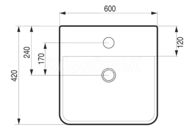 >>  Umývadlá  >>  Umývadlá na dosku  >>  Hopa PIENO Umývadlo nástenné/na dosku keramické 60x42x12cm s prepadom, otvor na bat. OLKLT