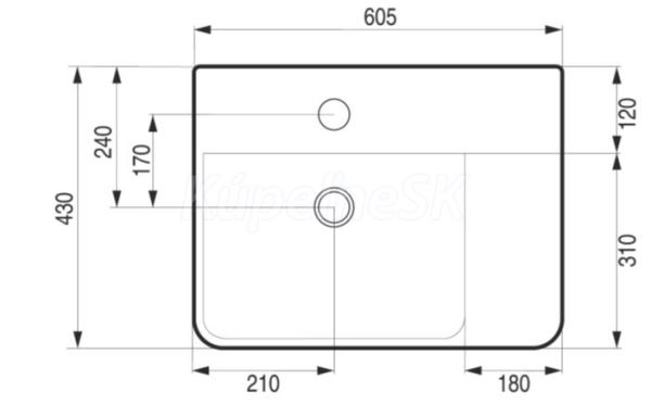 Hopa PIENO Umývadlo nástenné/na dosku keramické 60,5x43x12,5cm s prep. otvor na bat. Ľavé