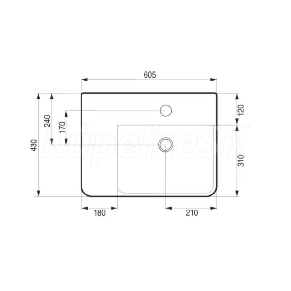 Hopa PIENO Umývadlo nástenné/na dosku keramické 60,5x43x12,5cm s prep. otvor na bat. Pravé