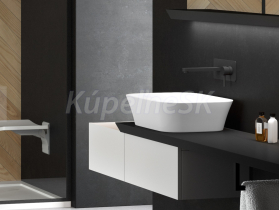 Umývadlo ASSOS na dosku nemá otvor pre stojančekovú batériu, pre elegantné riešenie môžete použiť umývadlové podomietkové batérie, alebo umývadlové vysoké stojančekové batérie.