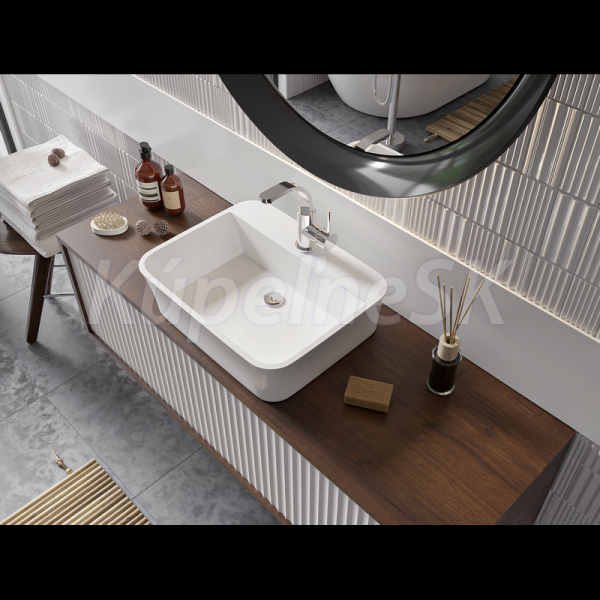Besco ASSOS S-LINE Umývadlo na dosku 520x410x170mm, liaty mramor, Biela