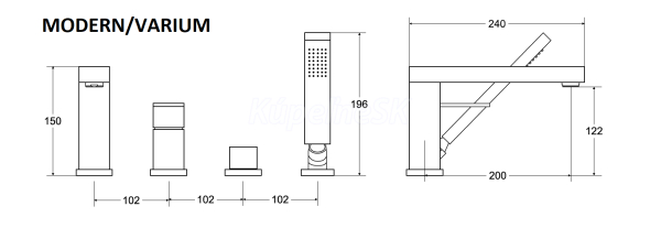 4 - otvorová vaňová batéria série MODERN/VARIUM je pre zákazníkov, ktorí chcú pohodlné, elegantné a pritom minimalistické riešenie s moderným dizajnom. Vaňová batéria má minimum detailov, čo produkt výrazne odľahčuje.