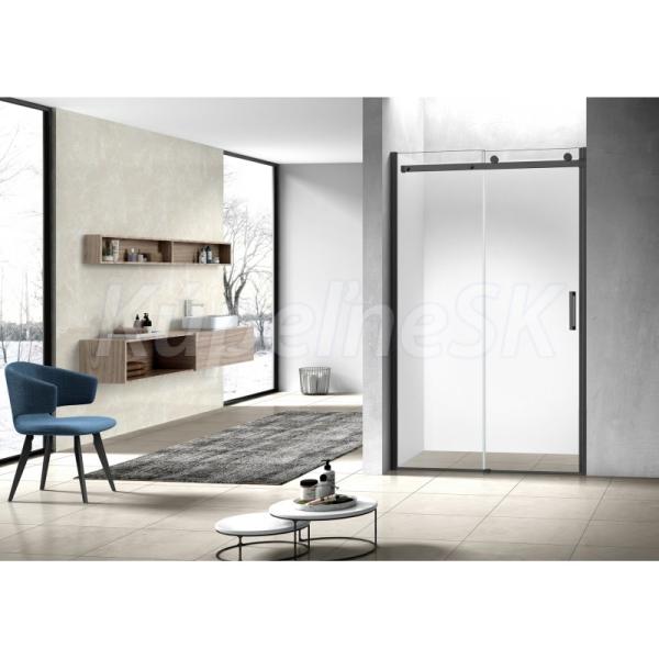 Luxusné sklenené posuvné dvere do niky v kvalitnej čiernej farbe hliníkových profilov. Plynulý a komfortný pohyb dverí zaisťujú horné masívne bezúdržbové ložiskové kolesá a spodný vodiaci diel. Vďaka absencii spodného vodiaceho profilu, vzniká ideálny bezbariérový vstup do sprchy. Tieto dvere sú vyrobené zo skiel o sile 8 mm. Dodáva sa v univerzálnom pravom aj ľavom prevedení.