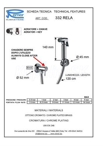 >> Batérie vodovodné >> Bidetové batérie >> REMER bidetový komplet KLASIK rohový ventil + hadica + sprška bidetová